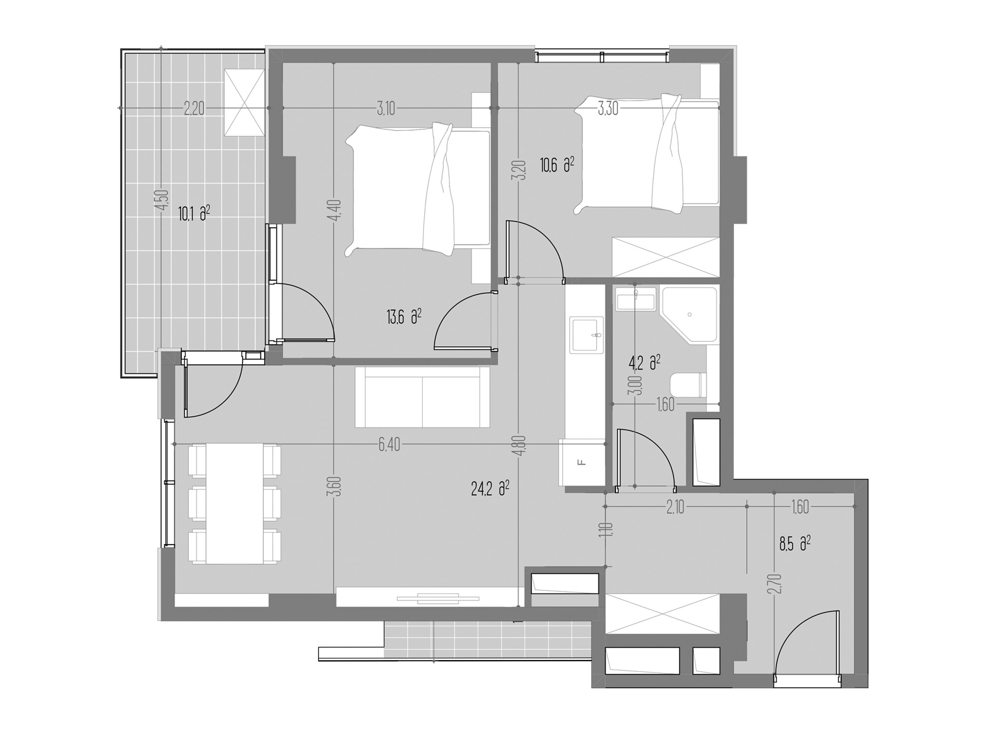 - საცხოვრებელი ფართი : 64.4 კვ.მ