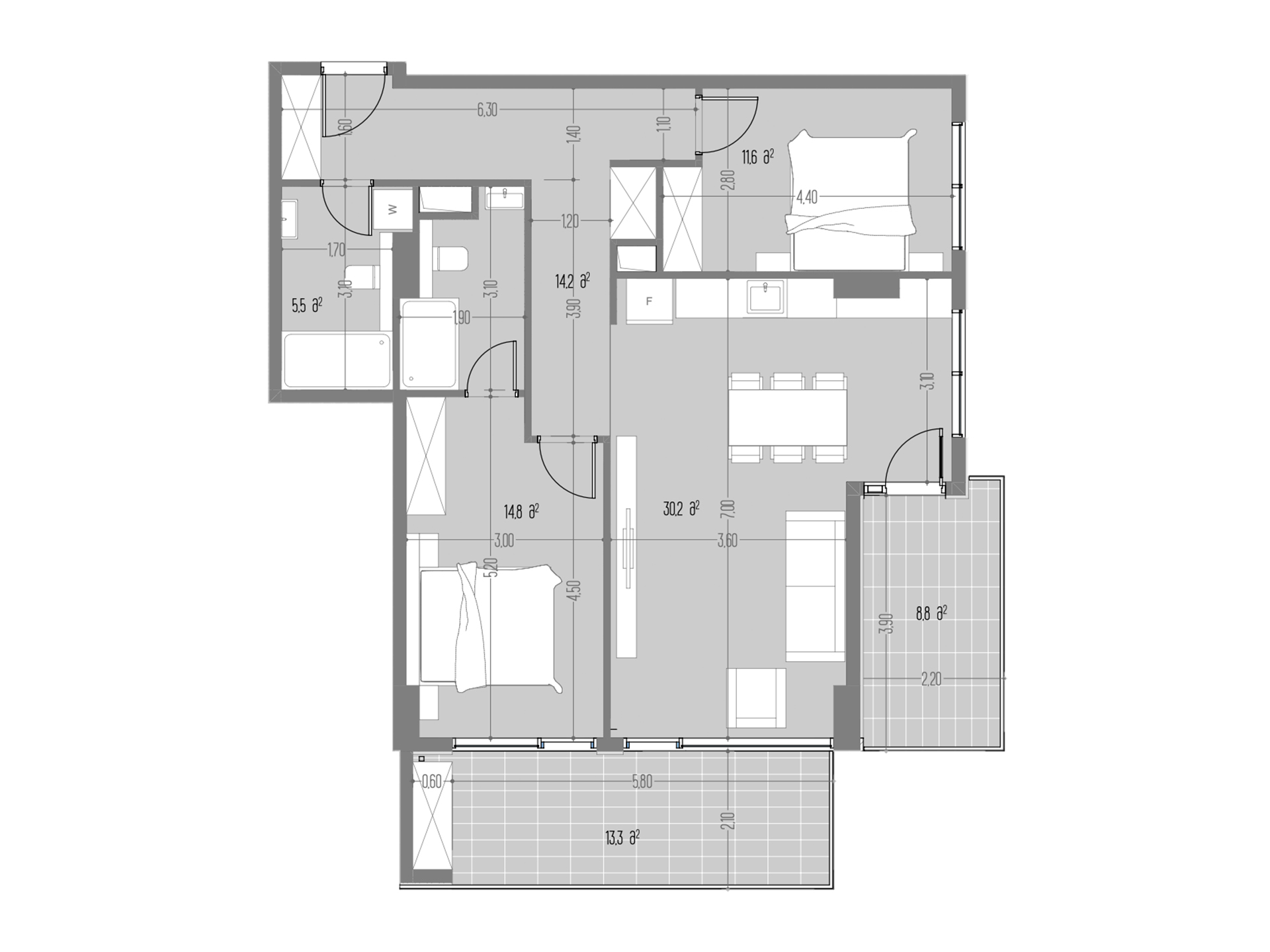 - საერთო ოთახი : 30.2 კვ.მ