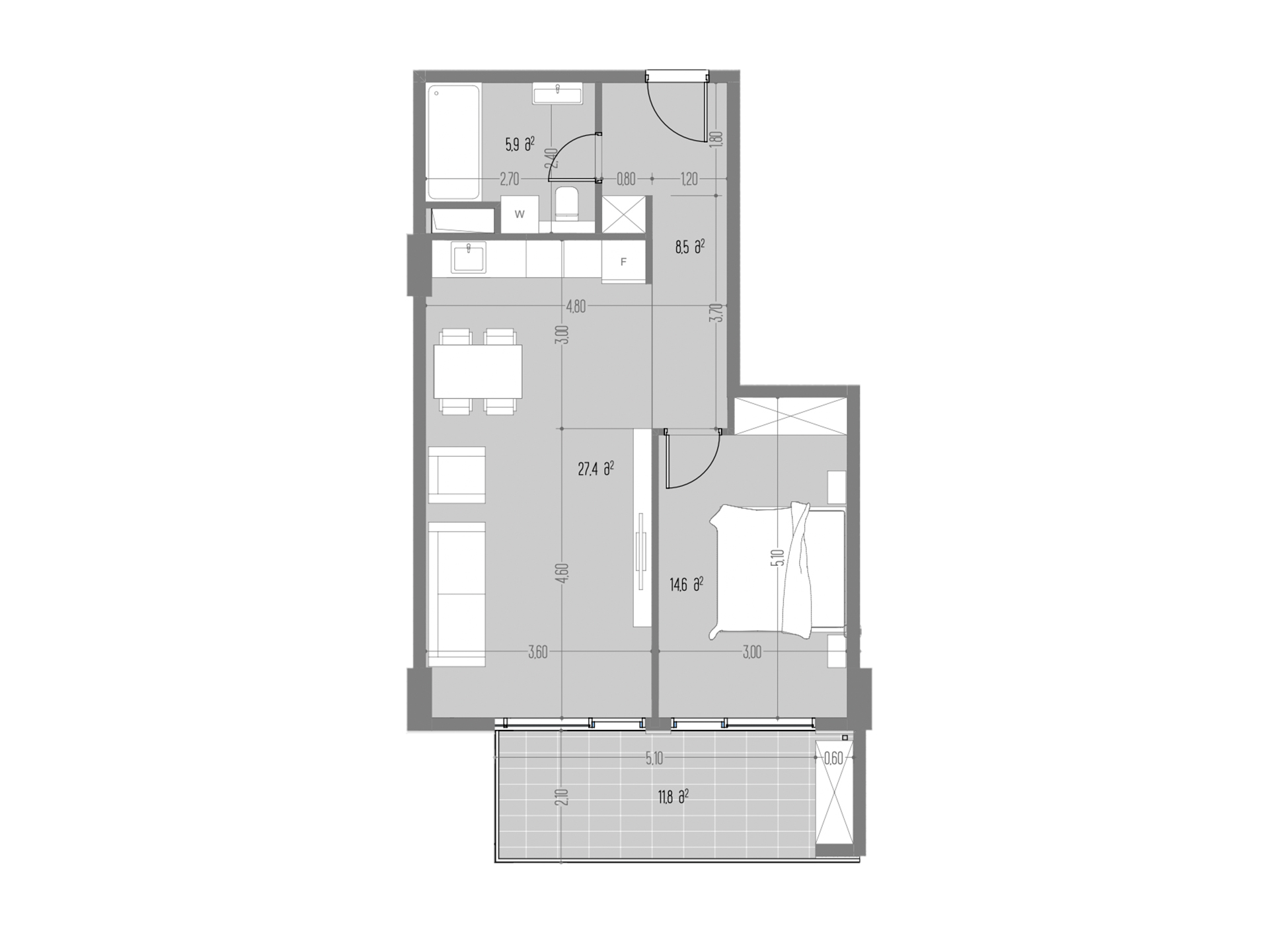 - საცხოვრებელი ფართი : 58.2 კვ.მ