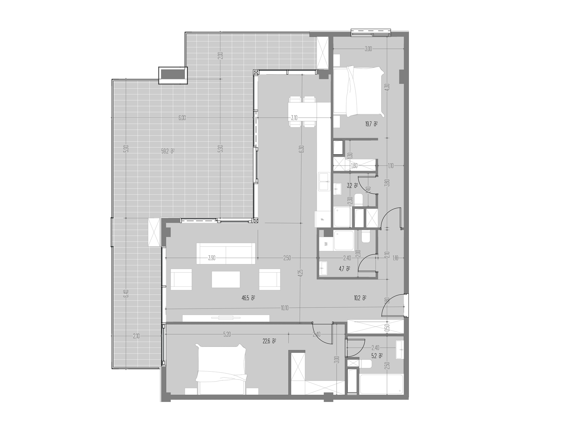 - საცხოვრებელი ფართი : 117.6 კვ.მ