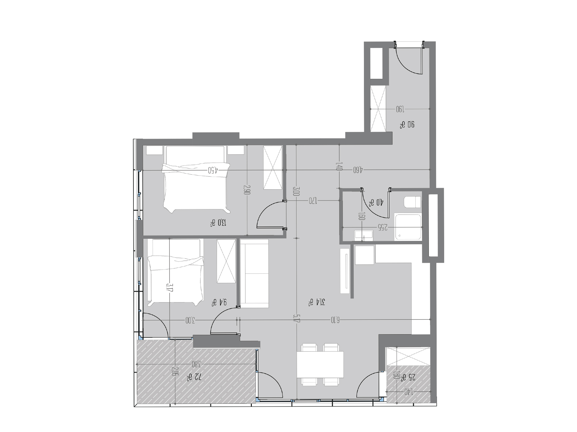 - აივანი 2 : 7.2 კვ.მ